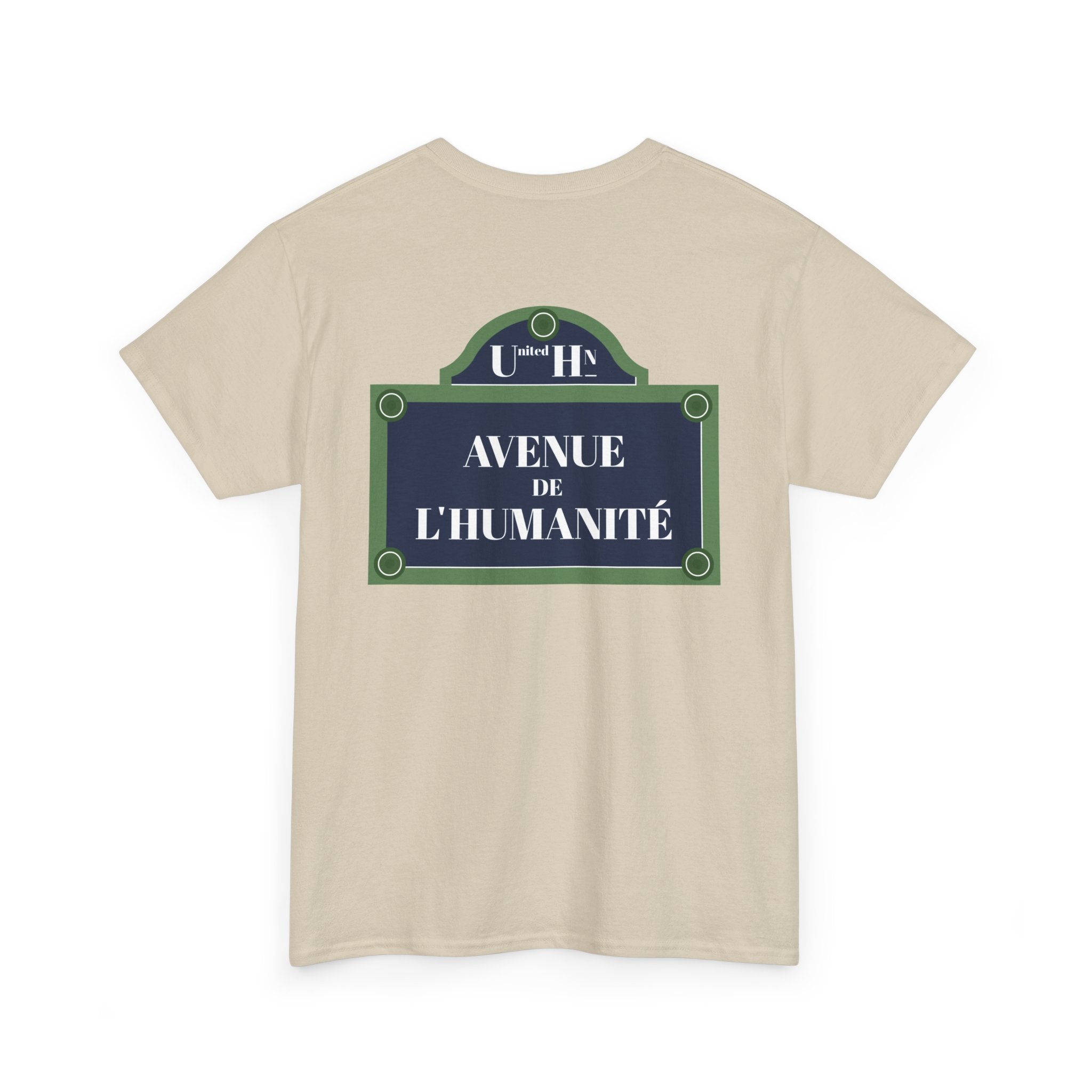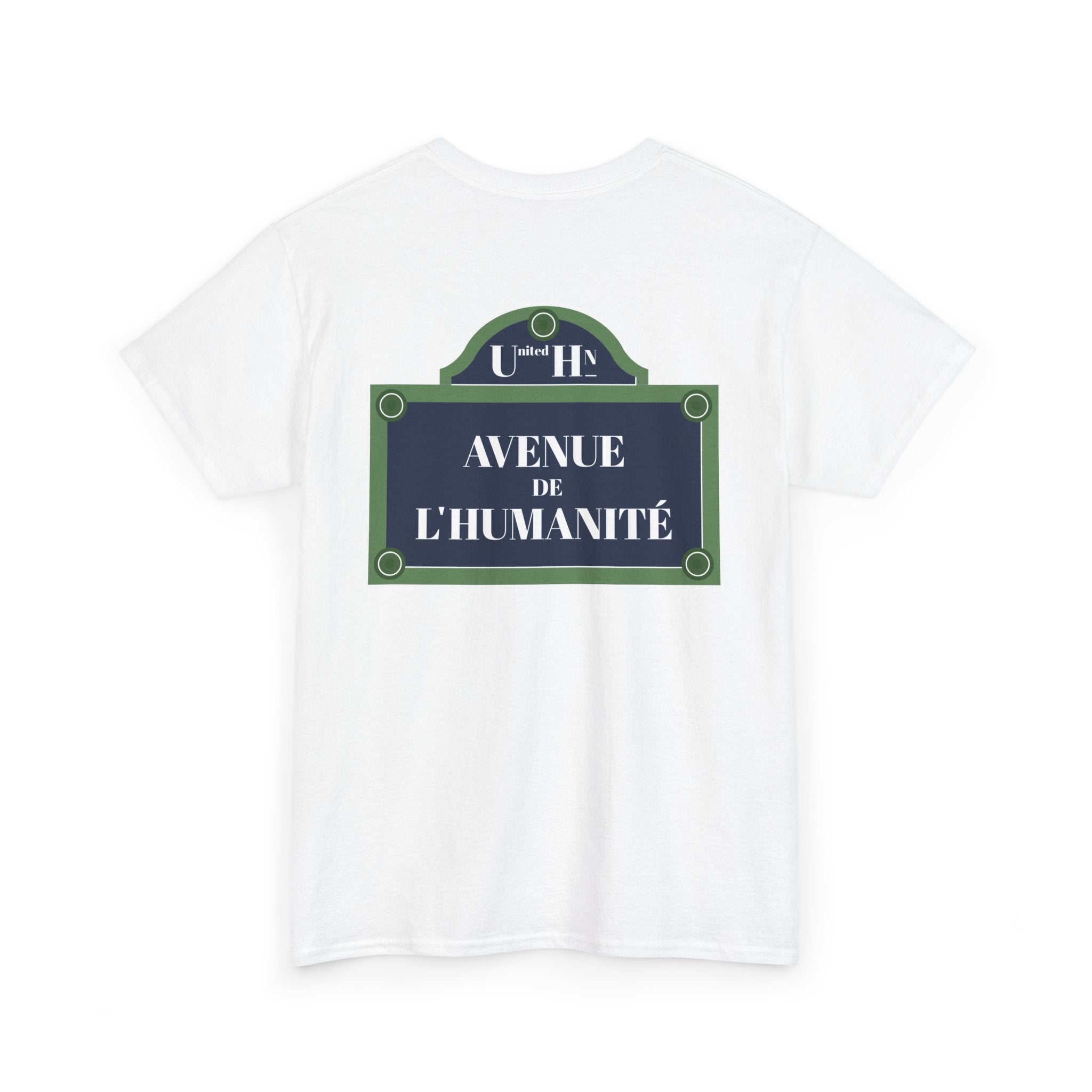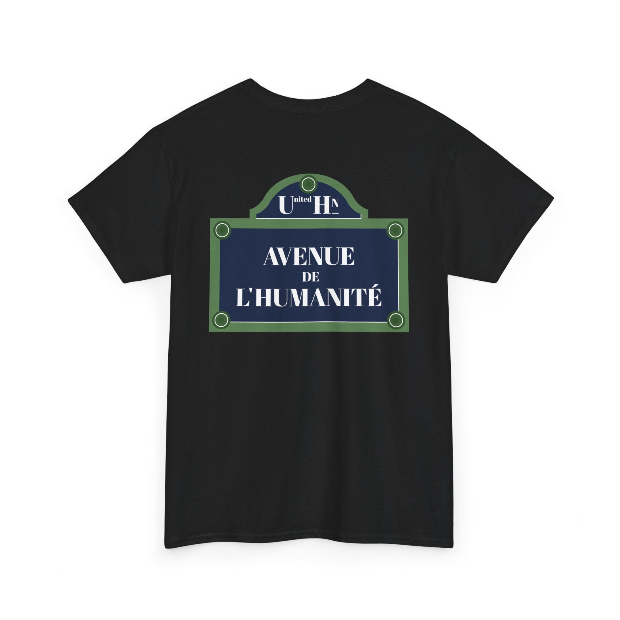 Take a walk down the Avenue de l’Humanité with this unique design. Inspired by street signs, this T-shirt celebrates humanity’s shared path toward unity and equality. Made with high-quality materials, it’s stylish and meaningful.