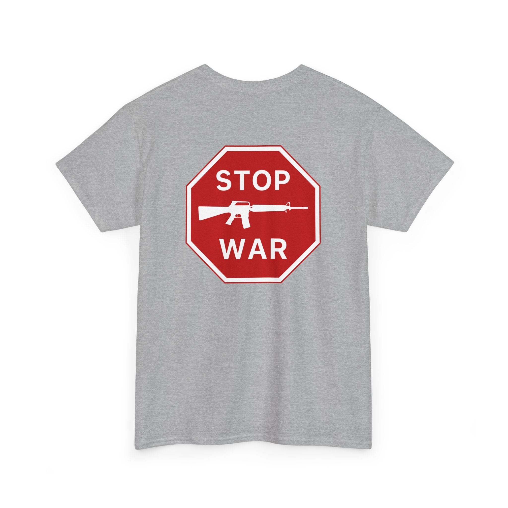 Send a clear and powerful message with the STOP WAR T-shirt. Featuring a bold stop sign-inspired design, this tee calls for peace and an end to global conflict. Wear it to promote harmony and support humanitarian causes.